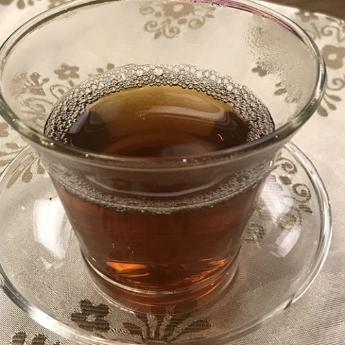 最初は少し息をフーフー吹きかけながら、茶葉を除け、少しずつ飲んでいきます。